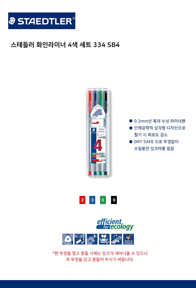 | 품명 및 모델명 | 스테들러 화인라이너 수성펜 334 4색세트(334-SB4) | ||